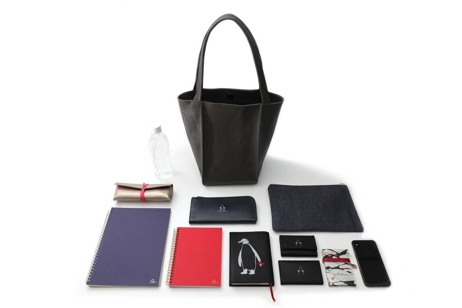 底辺に縫い目がないことで、目の錯覚を利用してマチを感じないデザインとなっています。